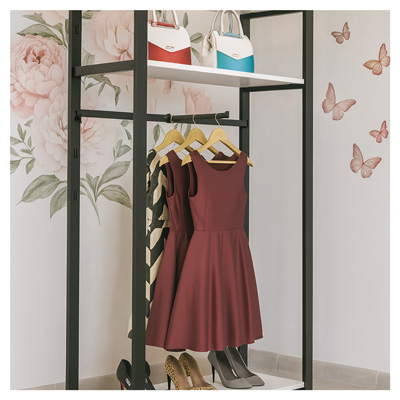 Der Abhängearm Venezia ist eine funktionale Ergänzung für das modulare Venezia-Ladenbausystem. Er eignet sich perfekt für die Präsentation von hängender Ware wie DOB, HAKA, Kinderbekleidung und Accessoires. Dank der einfachen Aufhängung am 30 × 10 mm Rechteckrohr lässt er sich flexibel einsetzen und schnell anpassen.