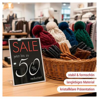 Mit dem Acrylglas-Ständer DIN A4 im Hochformat präsentieren Sie Informationen sauber, geschützt und gut sichtbar. Das klare, glatte Acryl sorgt für eine hochwertige Optik und lässt Ihre Einleger brillant wirken. Der stabile L-Ständer steht sicher auf Theken, Regalen, Empfangsbereichen oder Produktpräsentationen und eignet sich perfekt für Preisangaben, Aktionen, Öffnungszeiten oder Hinweise.