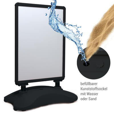 Standfuß: Kunststoff schwarz, befüllbar mit Wasser oder Sand