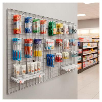 Erleben Sie erstklassige Spitzenqualität mit unseren verchromten Wandgitter. Hergestellt aus robustem Stahl mit glänzender Chromoberfläche, überzeugen sie durch Stabilität, eine hohe Tragkraft und Vielseitigkeit im Einsatz. Das Ladenbau-Gitter besteht aus einem 4 mm Draht mit einer praktischen Maschenweite von 50 x 50 mm. Diese Maschenweite ermöglicht die einfache Anbringung verschiedenster Zubehörteile wie Haken, Böden und Körbe und eignet sich hervorragend für Ausstellungen, Messen, Ladenverkauf, Handwerk und Büros – sowohl im Innen- als auch im Außenbereich. Die edle Chromoptik wertet jede Präsentation zusätzlich auf.