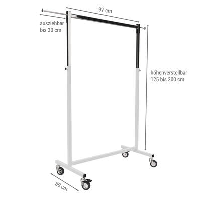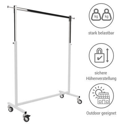 Wer einen fahrbaren Rollständer für den flexiblen Einsatz benötigt, hat mit diesem Konfektionsständer genau das richtige Produkt gefunden.