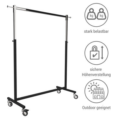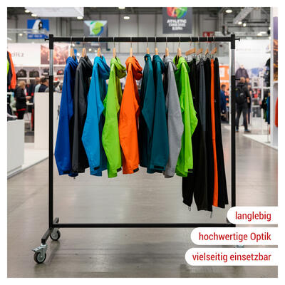 Der Rollständer SINA ist Ihre professionelle Lösung für Textilhandel, Lager, Showroom oder Zuhause. Mit robustem Stahlgestell und hochfesten PP-Industrierollen trägt er bis zu 100 kg – ideal für Jacken, Mäntel oder umfangreiche Kollektionen.
