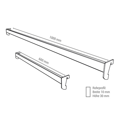 Mit der Tragestange Venezia schaffen Sie eine stilvolle und flexible Lösung für die Frontalpräsentation Ihrer Waren.