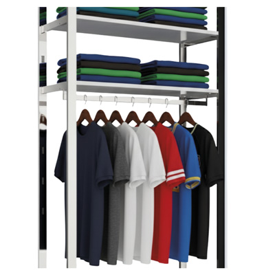 Die Unterschraub-Tragestange Venezia erweitert das modulare Venezia-Ladenbausystem um eine funktionale Aufhängelösung. Sie wird direkt an den Fachbodenträgern befestigt.