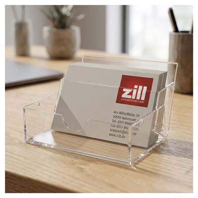 Diese hochwertige Visitenkarten-Box aus glasklarem Acrylglas sorgt dafür, dass Visitenkarten jederzeit ordentlich, geschützt und griffbereit sind. Der auflappbare Deckel ermöglicht ein schnelles Öffnen und Schließen, während die stabile Konstruktion die Karten zuverlässig vor Knicken, Staub und Verschmutzung schützt.